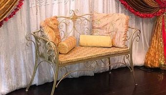 2 Seater Metal Gold Bench with Pillows: